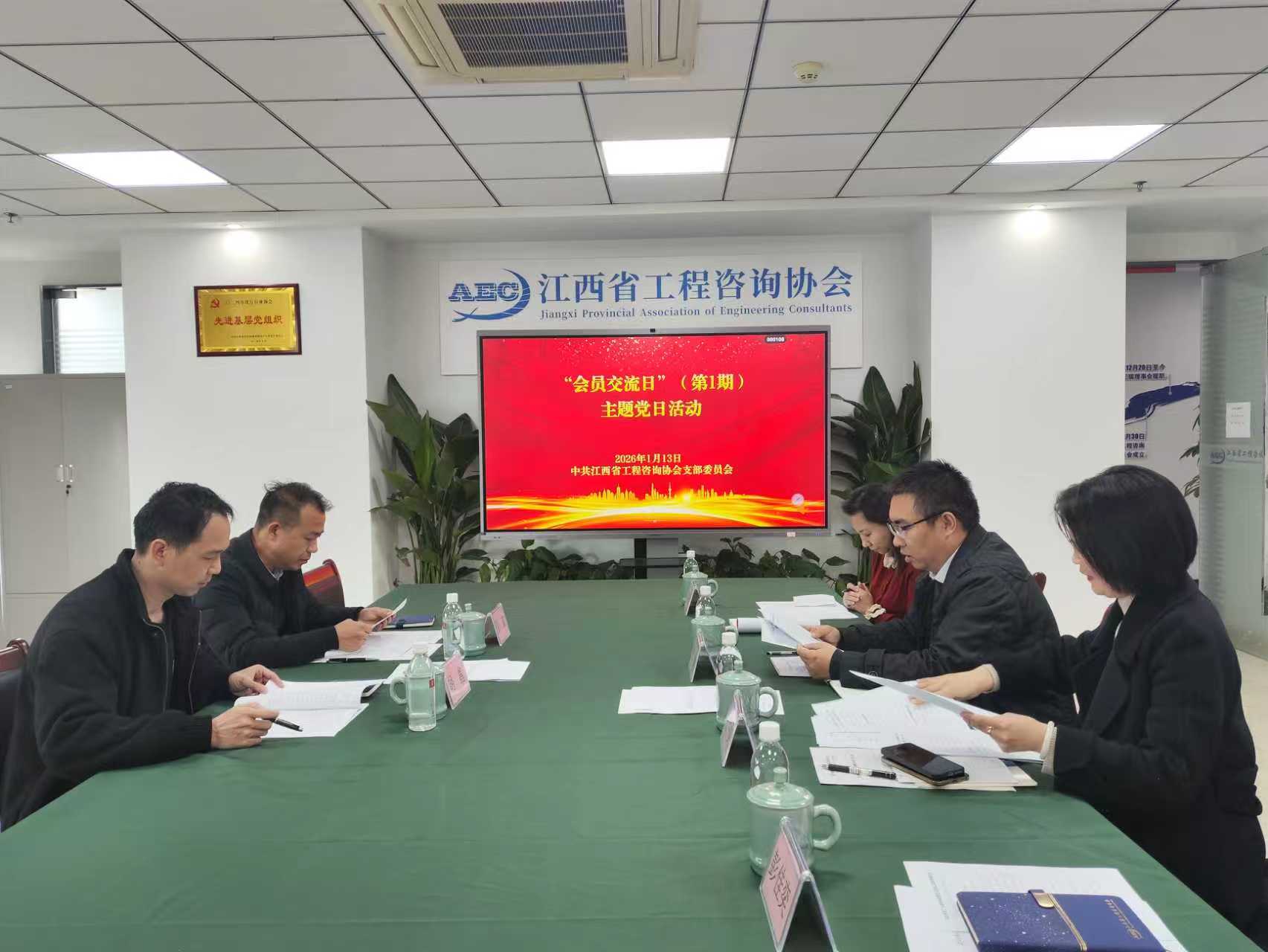 1月13日下午,江咨协会党支部“会员交流日”(第1期)主题党日活动在协会党建活动室举行。活动由协会党支部书记、会长贺巍主持,协会在家党员与常务理事单位宜春市勘测设计公司部分党员代表参会。